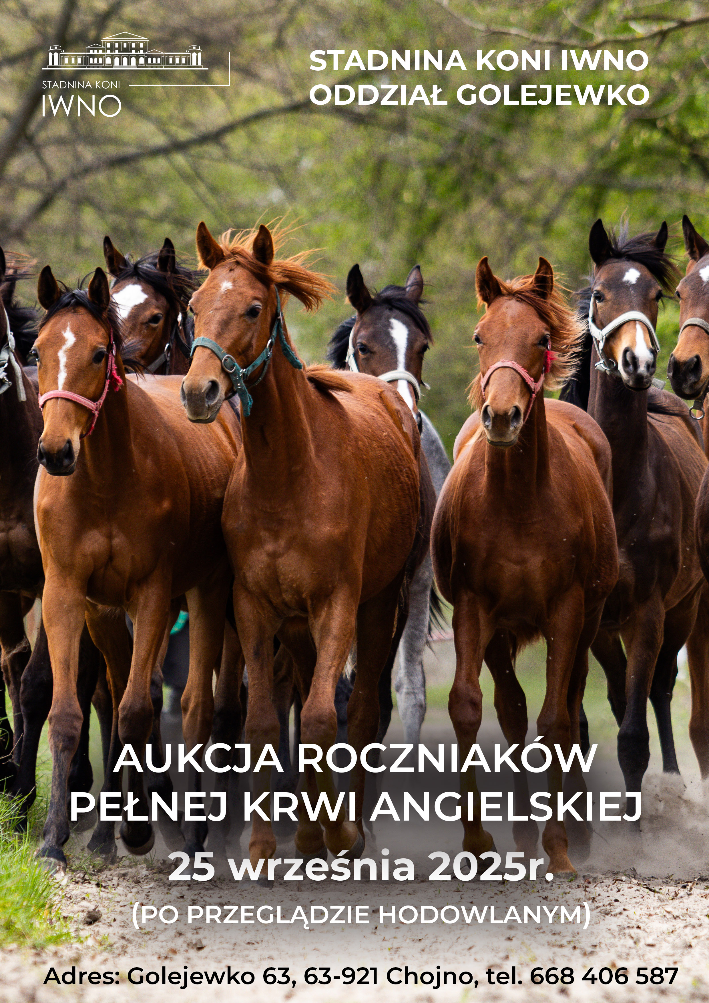 Stadnina koni w Iwnie od ponad 100 lat prowadzi hodowlę koni pełnej krwi angielskiej. To właśnie nim poświęcamy nasze siły z pełnym zaangażowaniem. Kontynuujemy wspaniałą tradycję zapoczątkowaną przez hr. Mielżyńskiego. Na terenie ponad 3000ha znajdują się piękne pastwiska i łąki, gdzie na łonie natury prowadzimy nasze konie. Ponadto dysponujemy własnym zapleczem do organizowania treningów sportowych na światowym poziomie. Wszystkie nasze konie otoczone są opieką specjalistów, ale też miłośników tych wspaniałych zwierząt. Dzięki temu reprezentują one poziom, którego nie powstydziłaby się żadna stadnina. Zachęcamy Państwa do odwiedzenia nas w okolicach Poznania. Wspaniałe krajobrazy i otoczenie natury połączone z przyjemnością z obcowania z końmi gwarantują niezapomniane wrażenia.